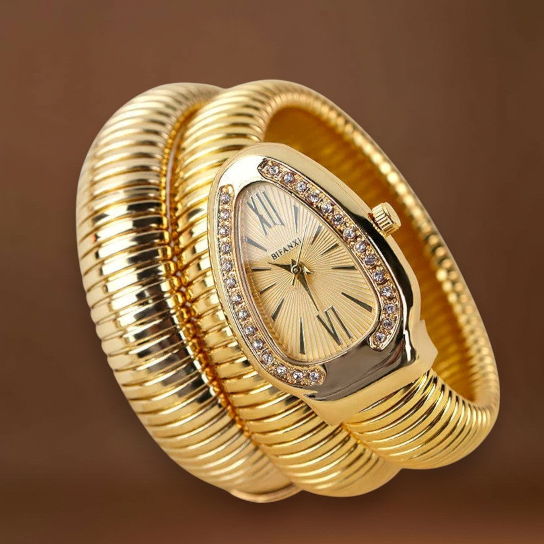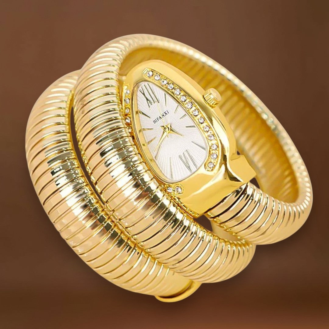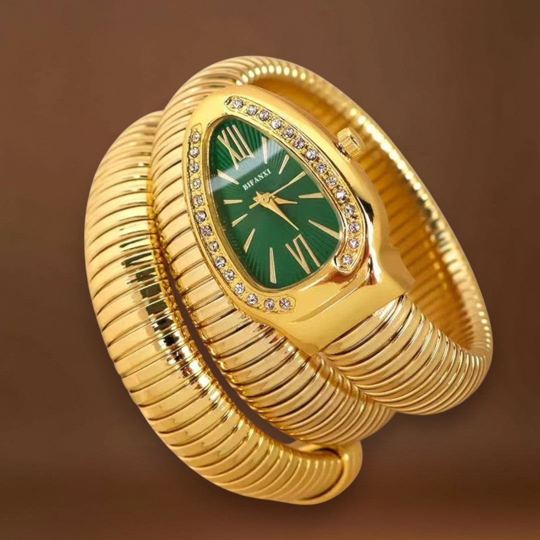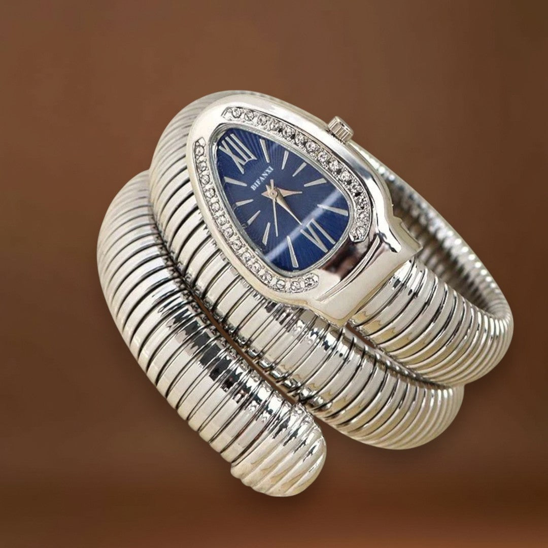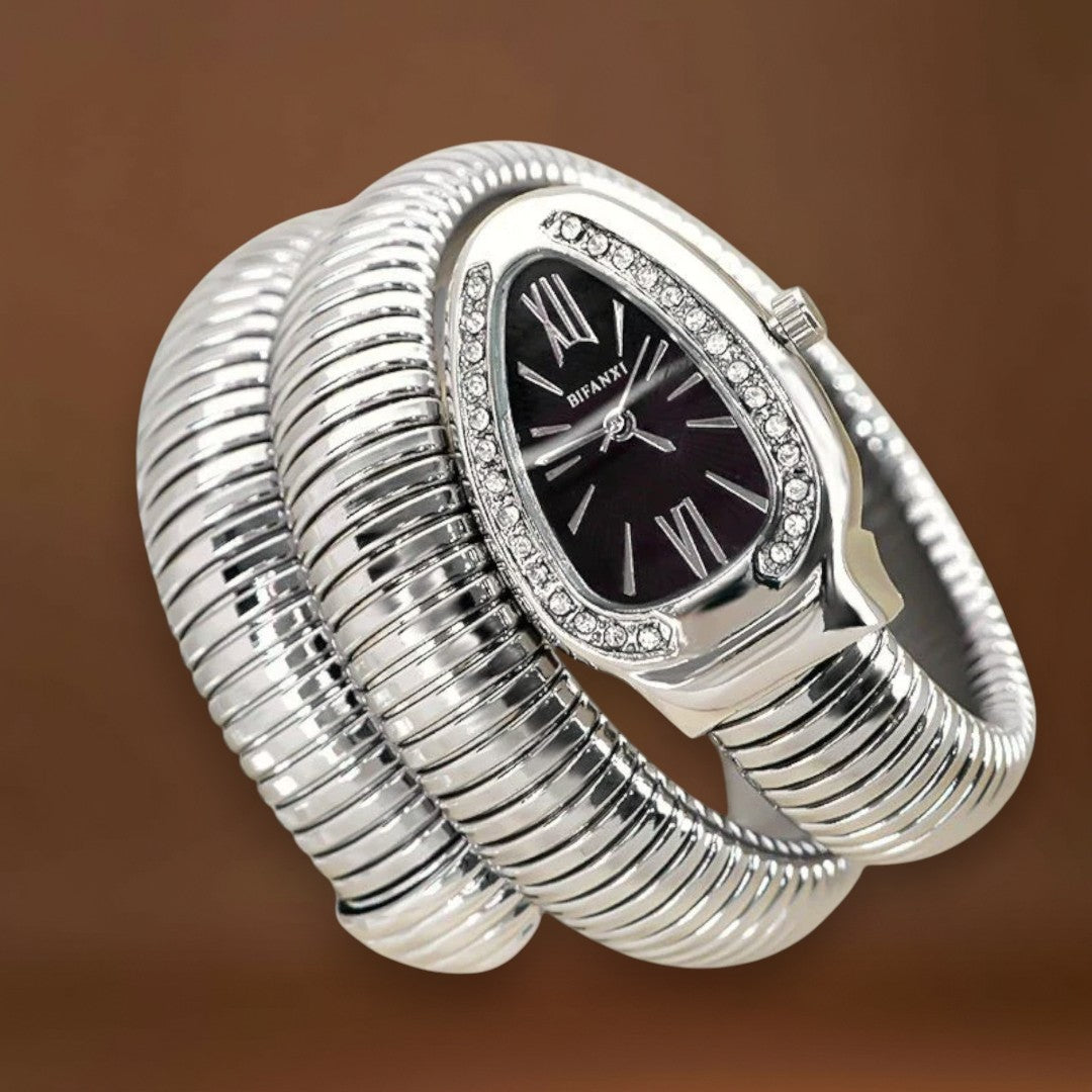 Maria® Estilo Serpente – Merüljön el a glamúr világában ezzel az exkluzív női órával, amely csillogó részleteivel és hipnotikus dizájnjával lenyűgöz. A kígyó eleganciájából és erejéből inspirálódva ez az óra valódi ékszer.