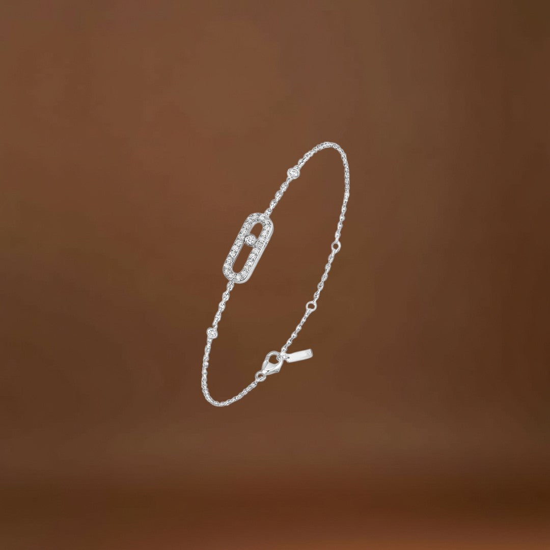 A mi kifinomult Melissa karkötőnk sárga arany, ezüst vagy rózsaarany és gyémánt díszítéssel rendelkezik, amelyet egy mozgó gyémánt jellemez, briliáns csiszolással. A filigrán dizájn elegáns pavéval emeli ki a gyémántok ragyogását.
