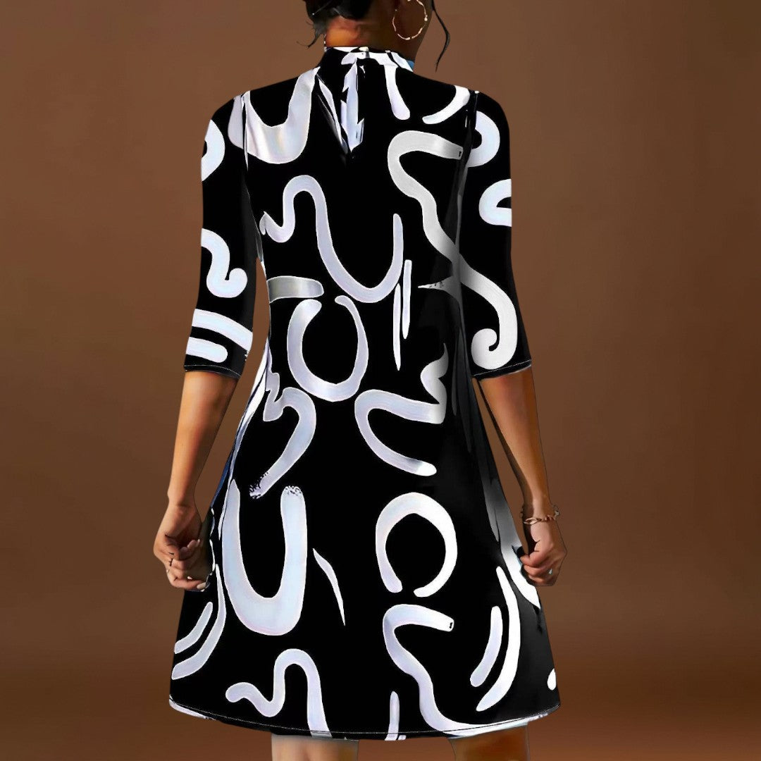 • Egyszerű ruha dizájn: Előnyös, térdmagasságú vágással és normál ujjal, klasszikus sziluettet teremt.