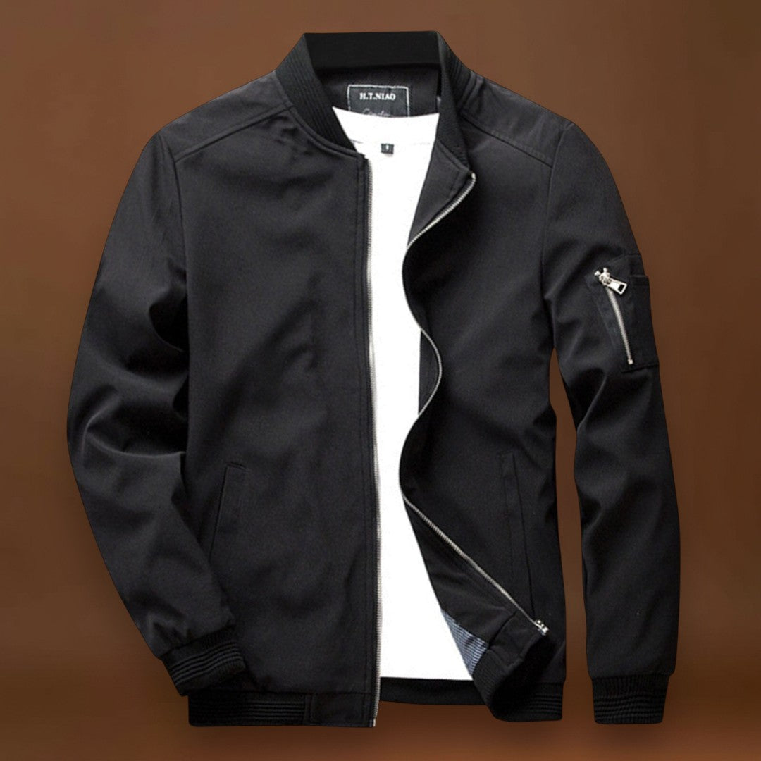 Ez a szél- és vízálló bomber kabát távol tartja a szelet és az esőt a testtől. A külső réteg tartós keverék, amely taszítja a vizet és blokkolja a széllökéseket. A bomber sziluett szoros illeszkedést biztosít a deréknál és a mandzsettáknál, hogy csökkentse a huzatot.