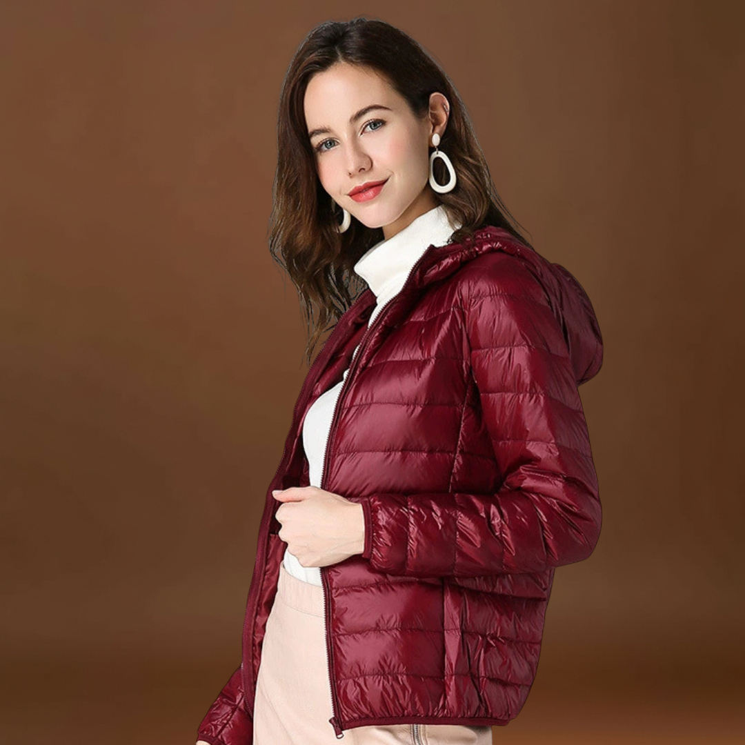 A vízálló technológia biztosítja, hogy védve legyél a váratlan esőktől, míg a puha tollbélés melegen tart anélkül, hogy a kabátot voluminózussá tenné. A finom redők eleganciát adnak, így ez a kabát tökéletes mind a hétköznapi, mind a kifinomultabb összeállításokhoz.