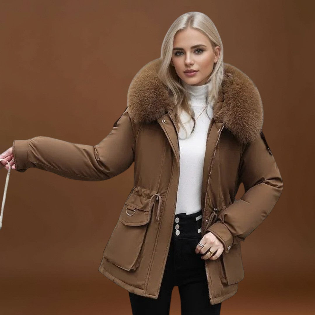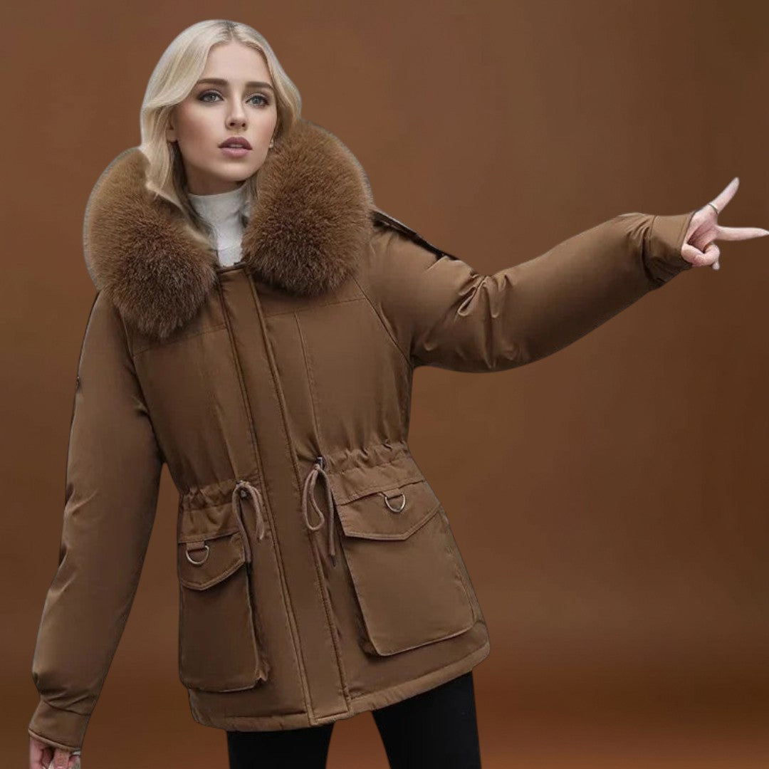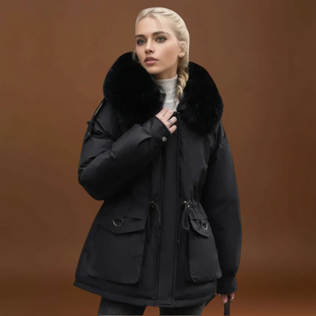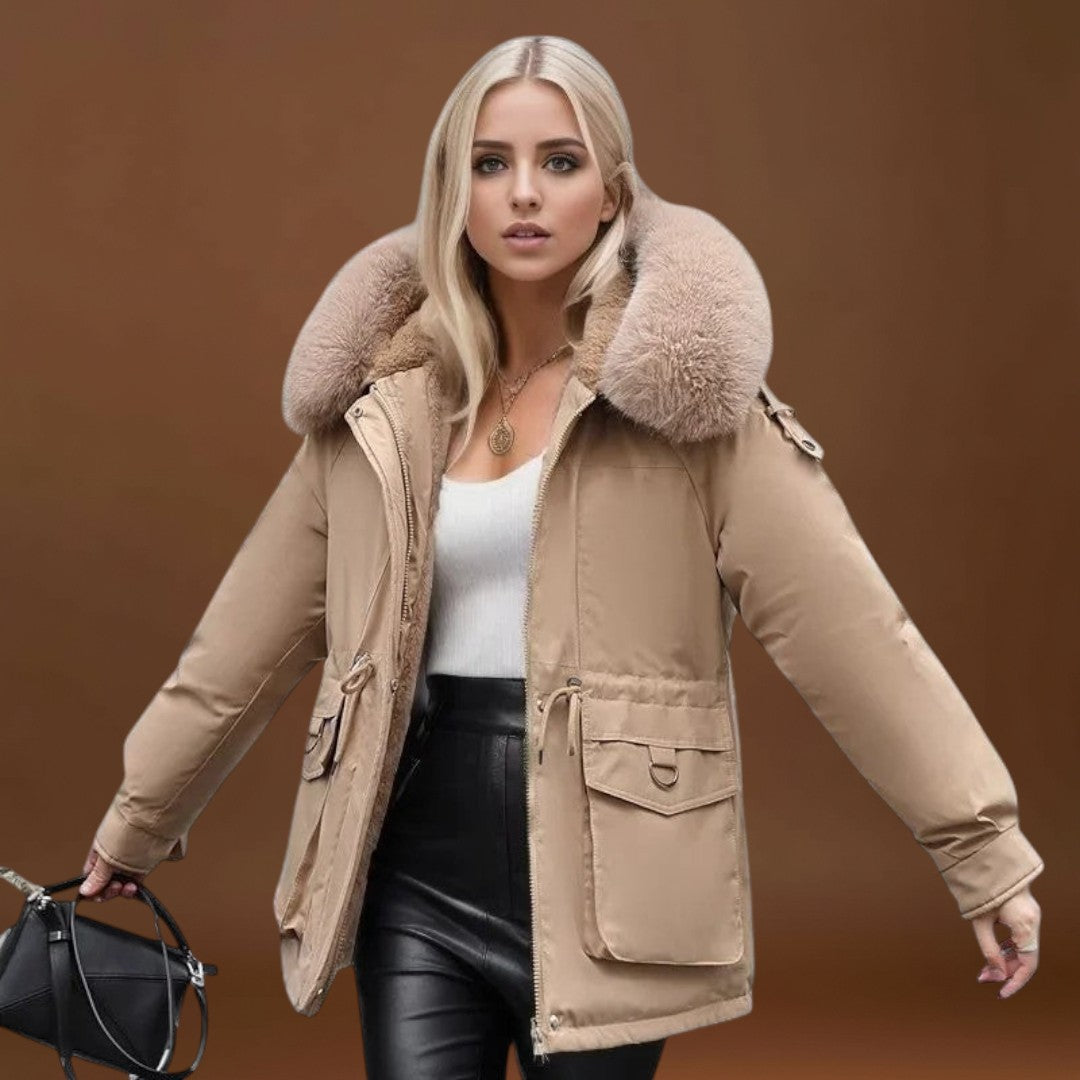 • Állítható Kapucni Műszőrme Részletekkel: A kapucni extra meleget és stílust kínál, elegáns műszőrme díszítéssel, amely feldobja a darab megjelenését.