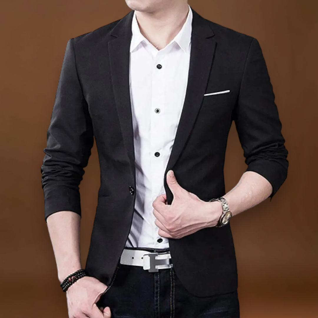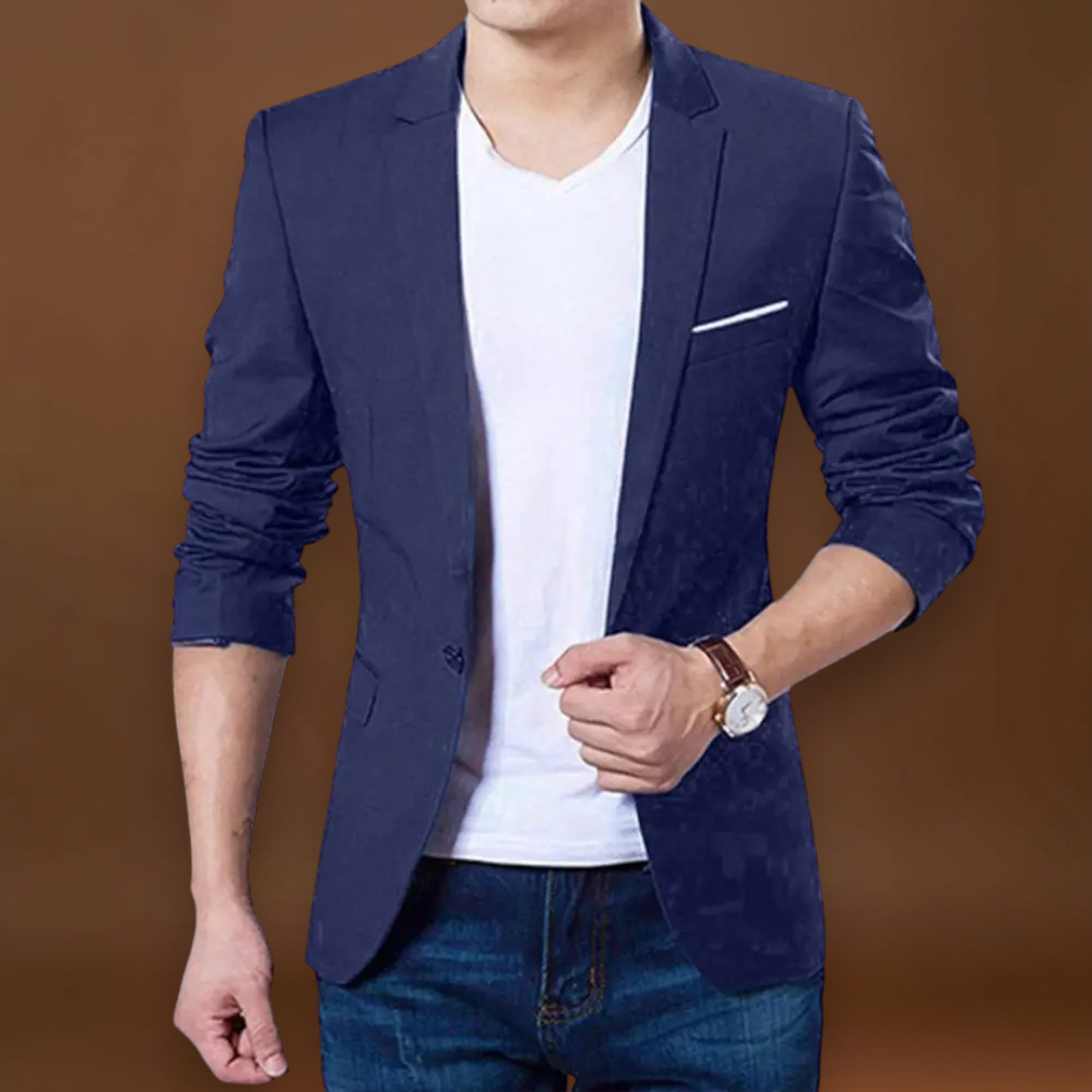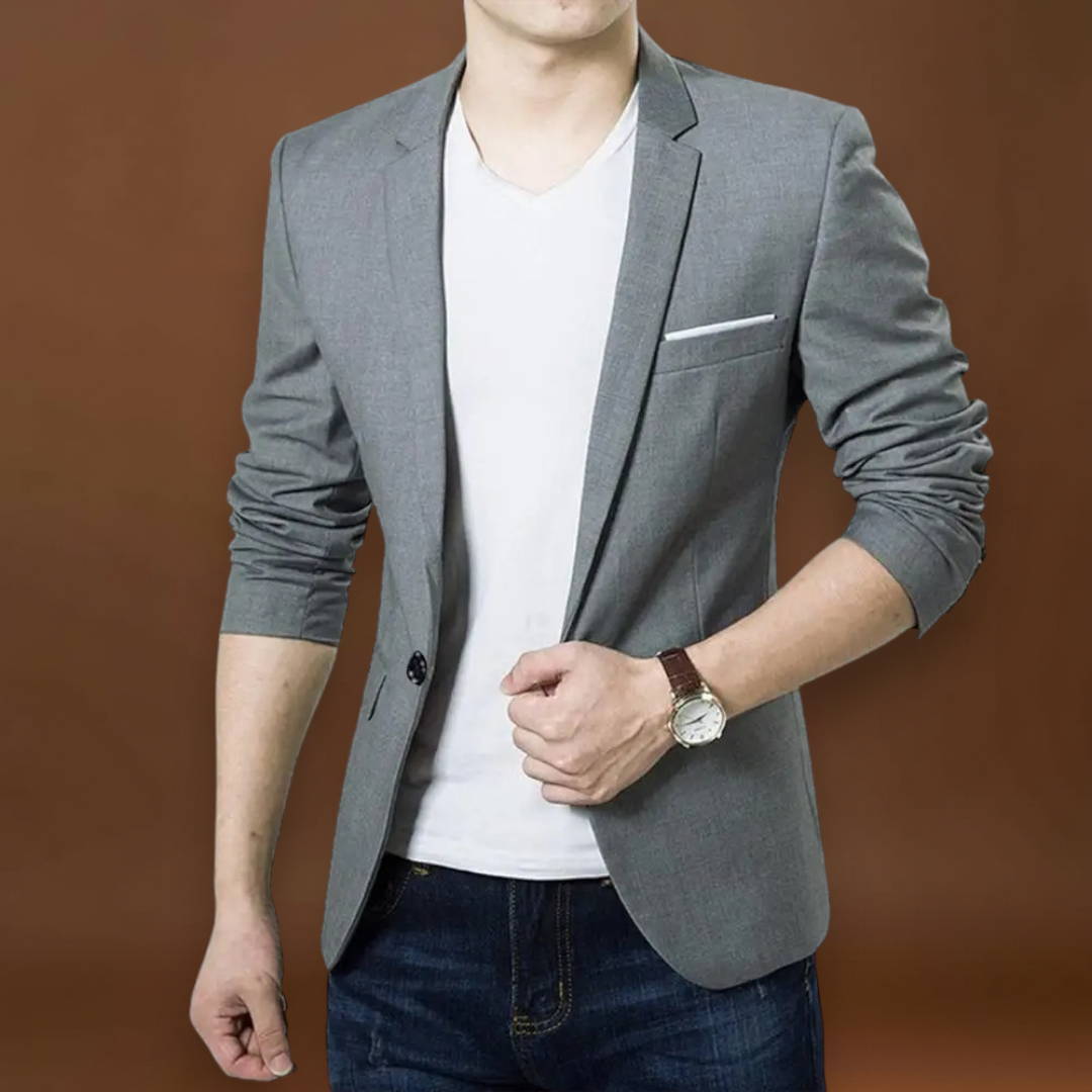 Ez a blézer karcsú, testhezálló szabású, egy gombbal záródik. Úgy lett tervezve, hogy lehetővé tegye a könnyű mozgást, miközben rendezett sziluettet biztosít. A hajtóka simán fekszik és a strukturált vállak segítenek megőrizni a formai állapotát.