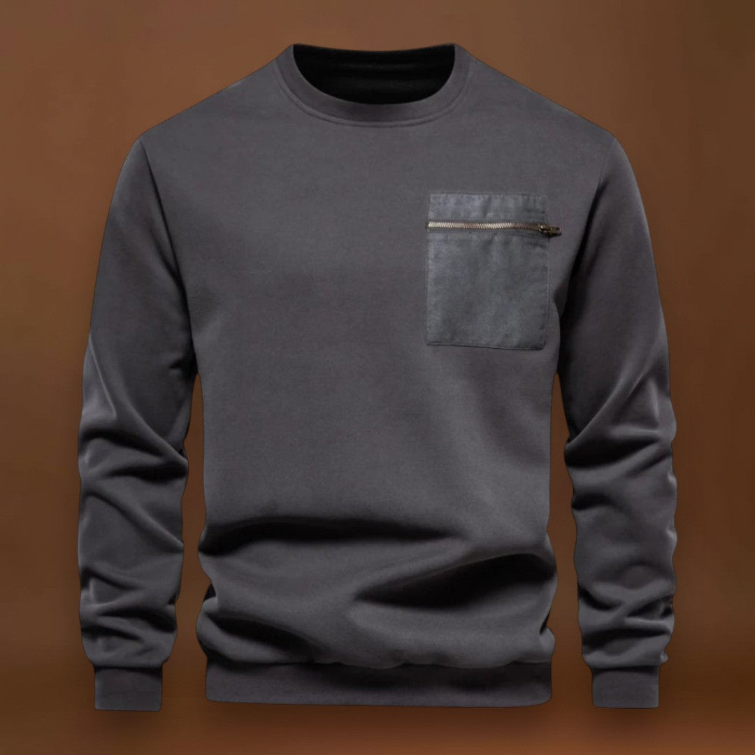 Egy cipzáras zseb a mellkason biztonságos tárolást biztosít apró tárgyak, például kulcsok vagy kártyák számára. A pulóver konstrukció és a tiszta vonalak megkönnyítik a pulóver felvételét és más ruhákkal való kombinálását.