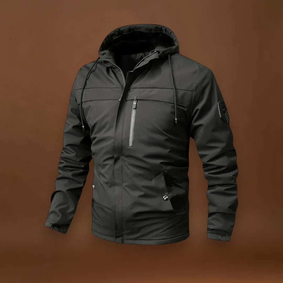 - Jellemzők: Lezárt varratok, állítható kapucni, elülső zsebek