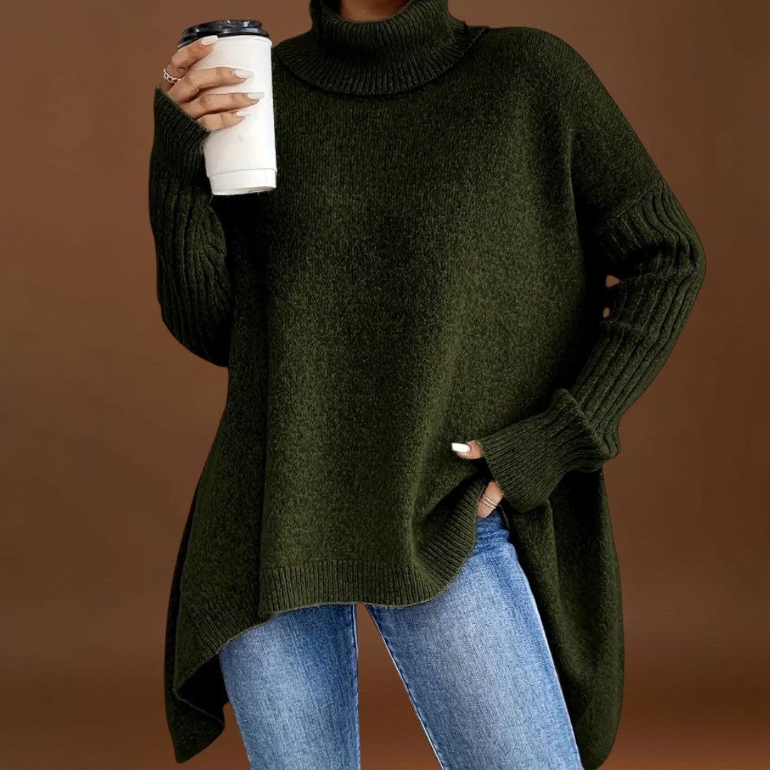Ez a magas nyakú pulóver tökéletes választás a hűvös napokra — puha anyagával, laza szabásával és klasszikus dizájnjával kényelmet és stílust kínál egyben.