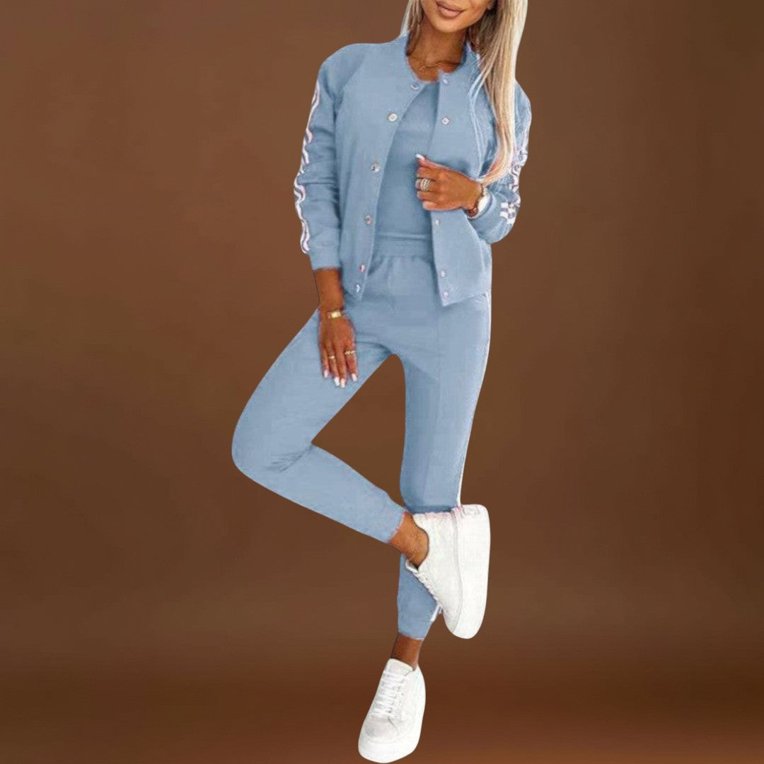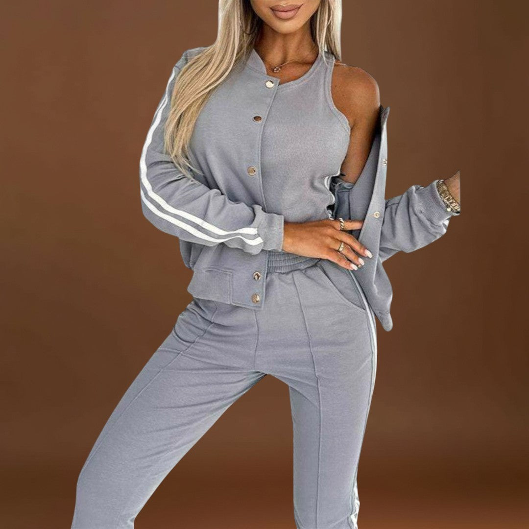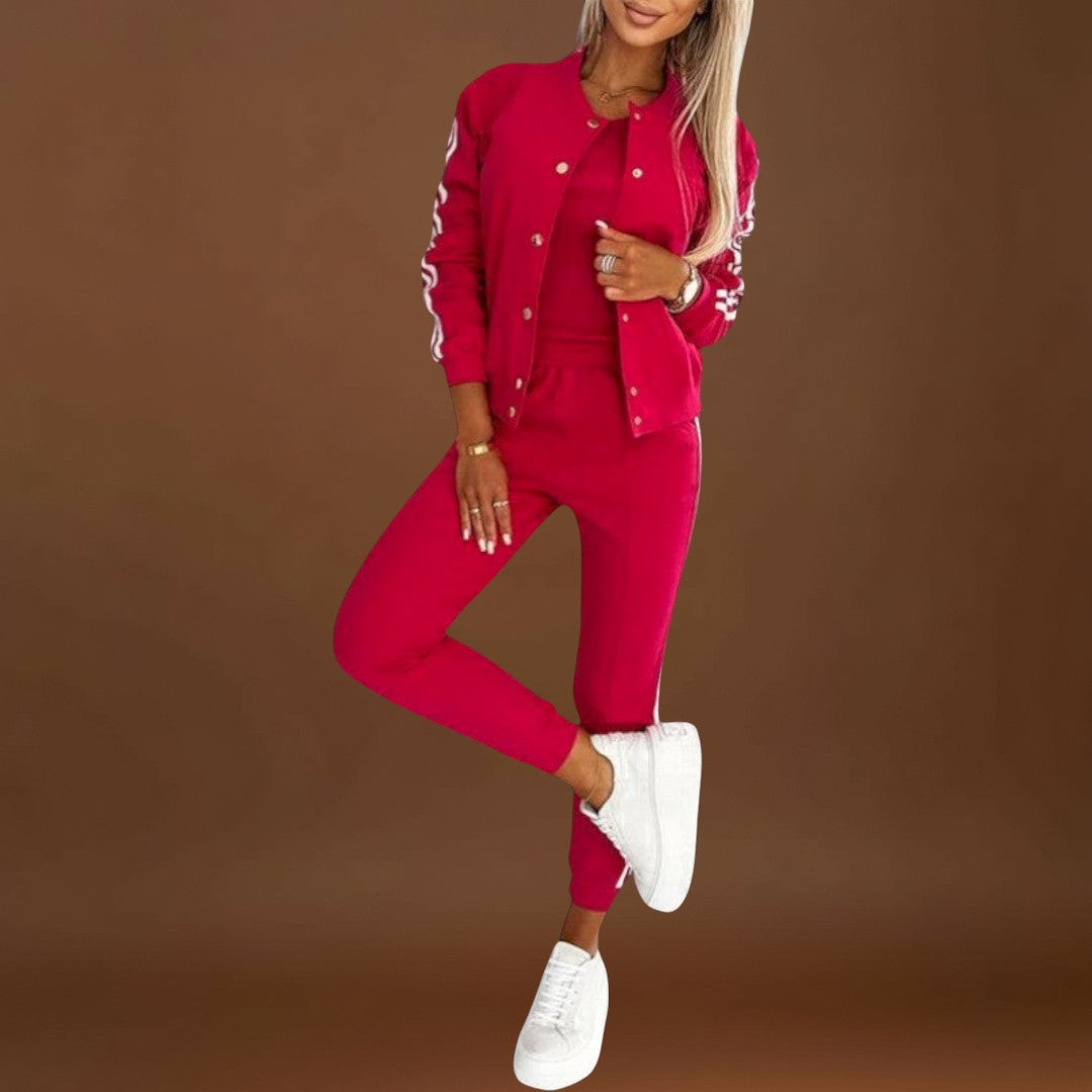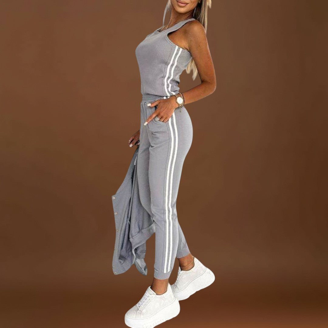 • Modern és nőies megjelenés – A karokon és a nadrágon lévő csíkos dizájn sportos-chic érintést ad, ami sosem marad észrevétlen.