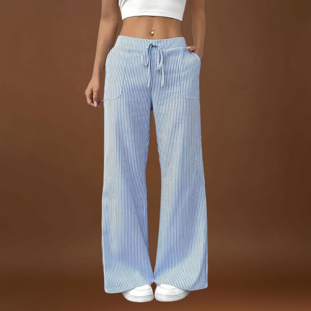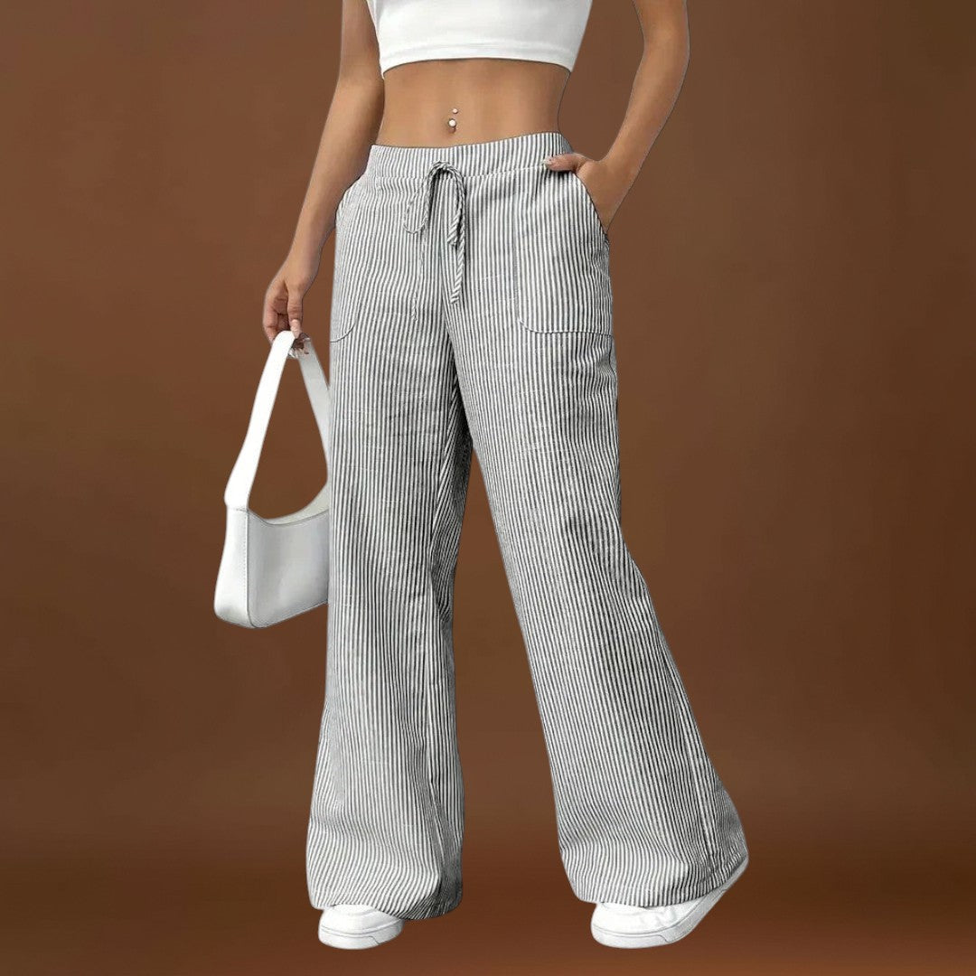 Kényelmet biztosít anélkül, hogy lemondanál az eleganciáról. A rugalmas derék és a húzózsinór személyre szabott illeszkedést garantál, míg a könnyű és légáteresztő anyag egész nap frissen tart. A bő lábak és a nagy, praktikus zsebek tökéletessé teszik ezt a nadrágot a laza pillanatokhoz és a stílusos kimenetekhez egyaránt.