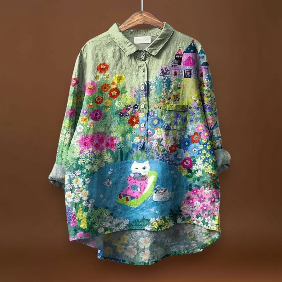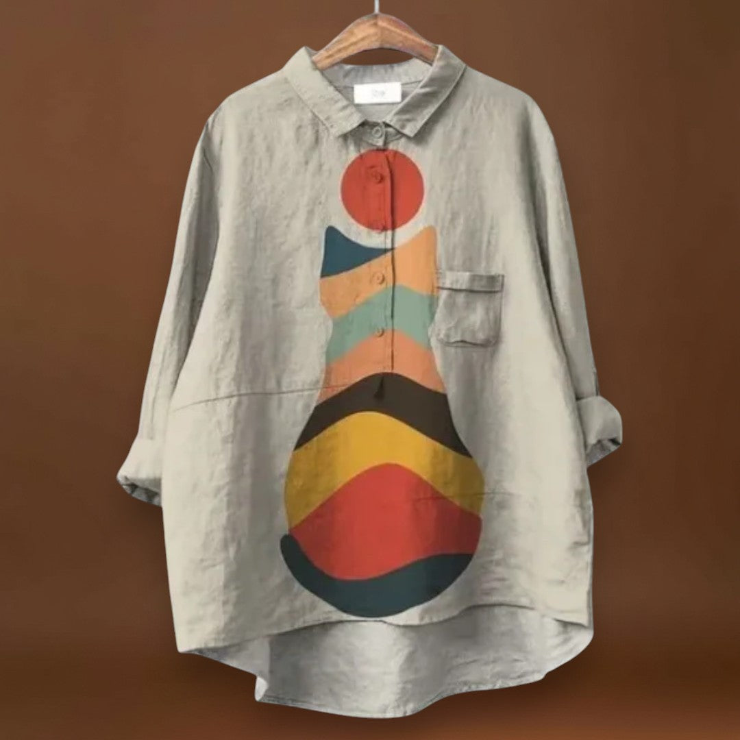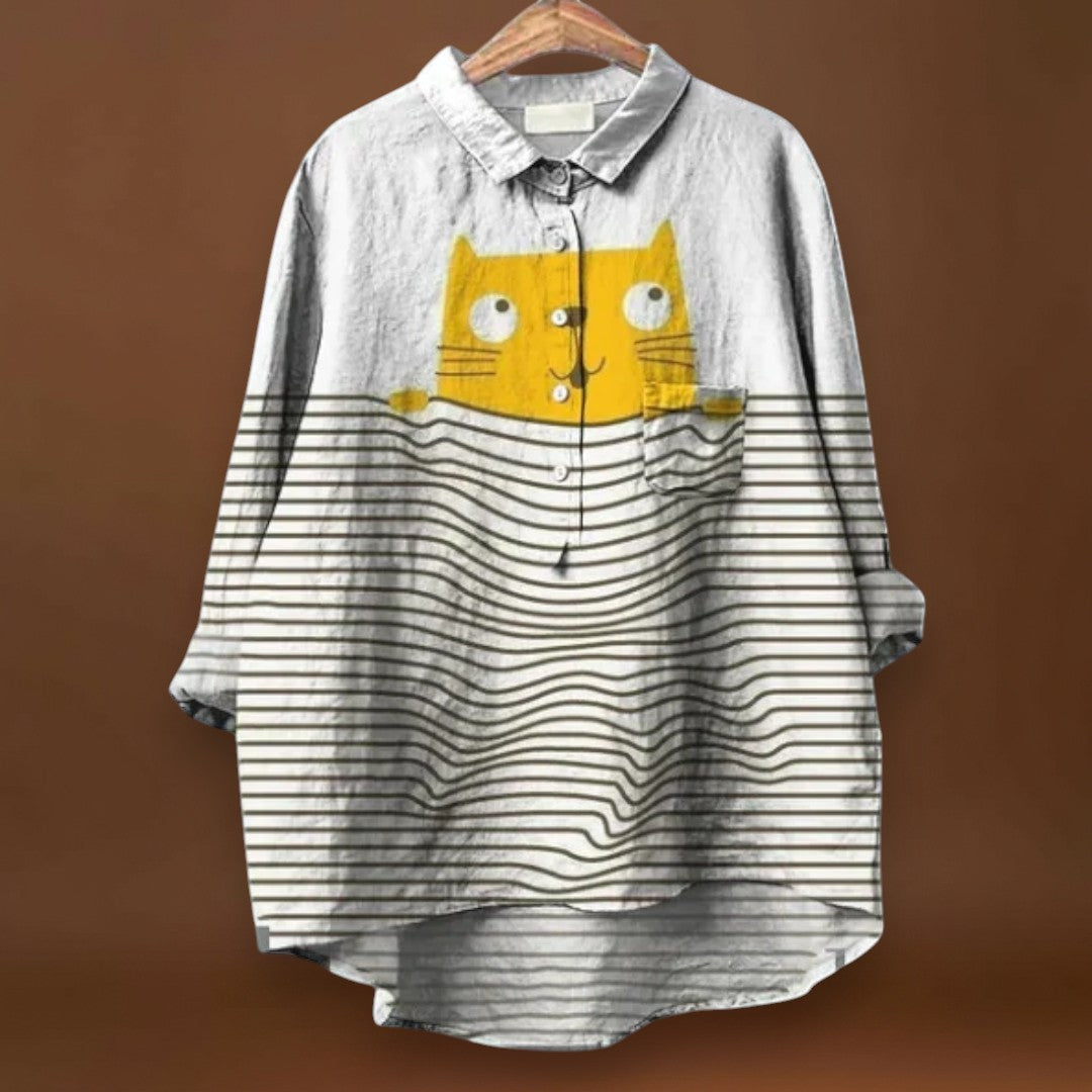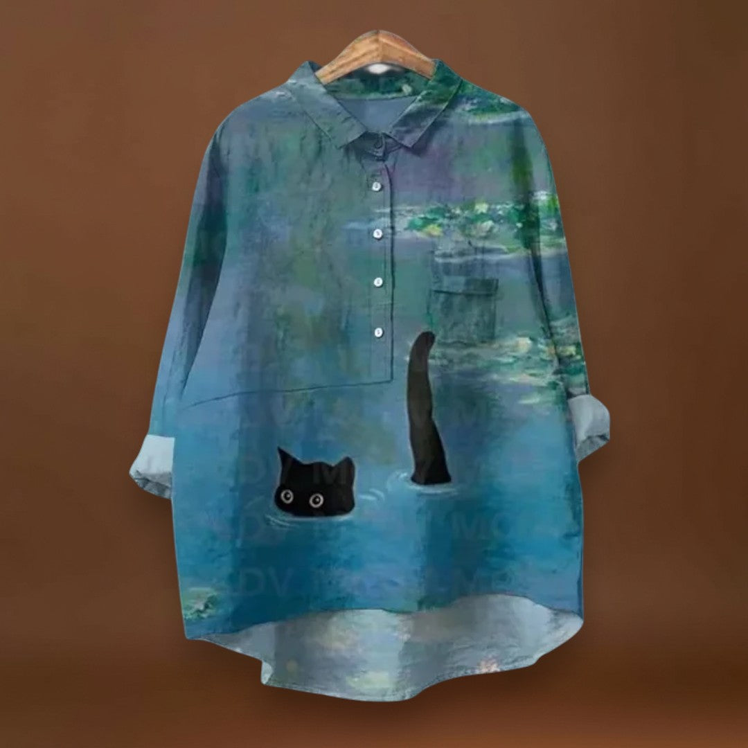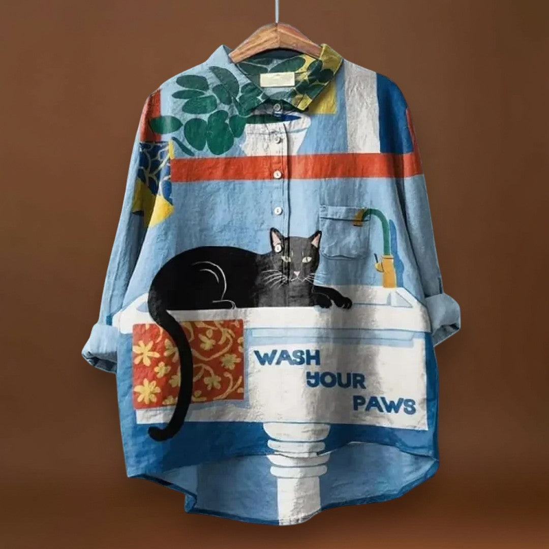 Ez a póló tökéletes azoknak, akik szeretik az egyedi és szórakoztató darabokat! A stílusos szemüveges macska és a kezében lévő ital mintájával egy merész és kreatív érintést ad a megjelenésnek. Ideális hétköznapi összeállításokhoz, jól kombinálható farmerrel, leggings-szel vagy sorttal, hogy könnyed és tele attitűddel rendelkező lookot kapjunk.