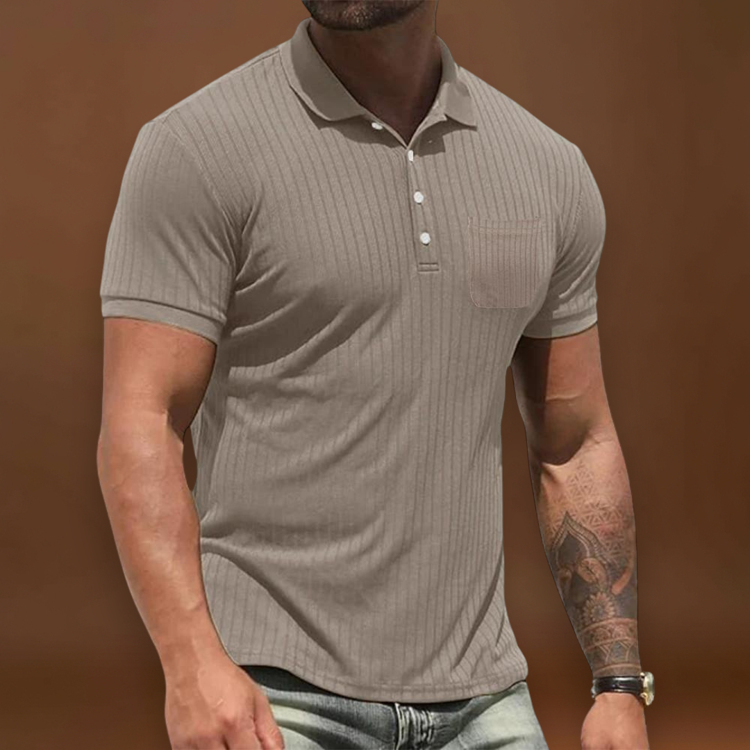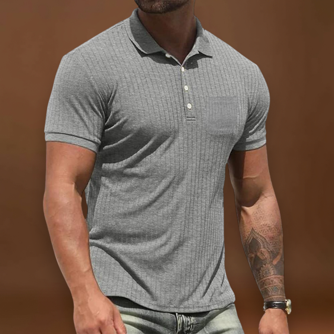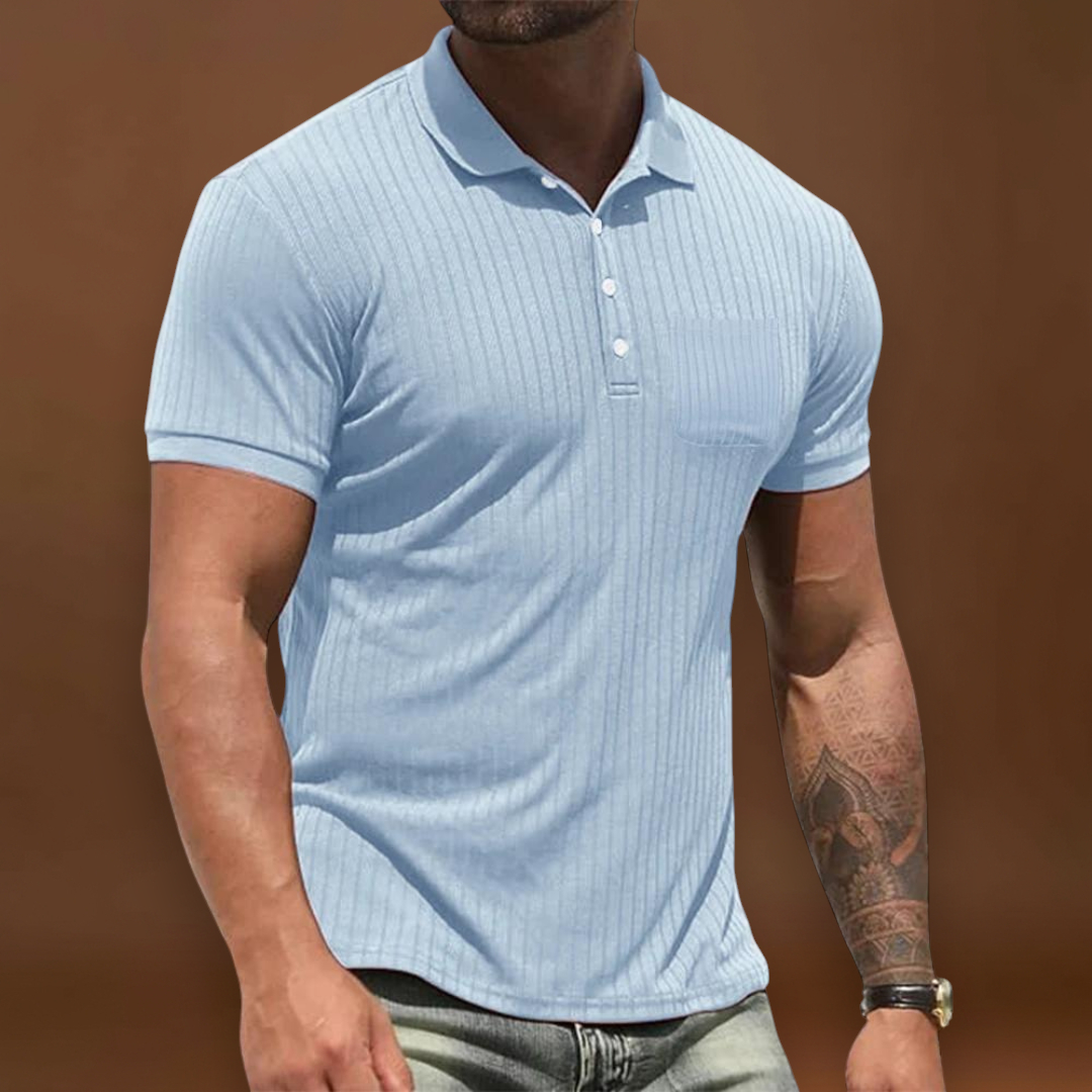 Ez a poloing sima felületű és puha tapintású. Hagyományos polo gallérral és testhezálló rövid ujjakkal rendelkezik. A design a tiszta és hasznos részletekre összpontosít, amelyek támogatják a kényelmet és a gondosan megjelenést.