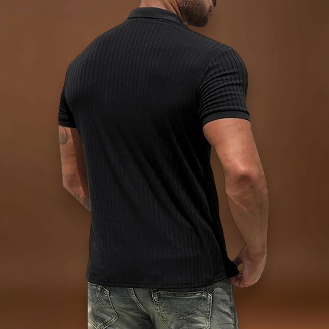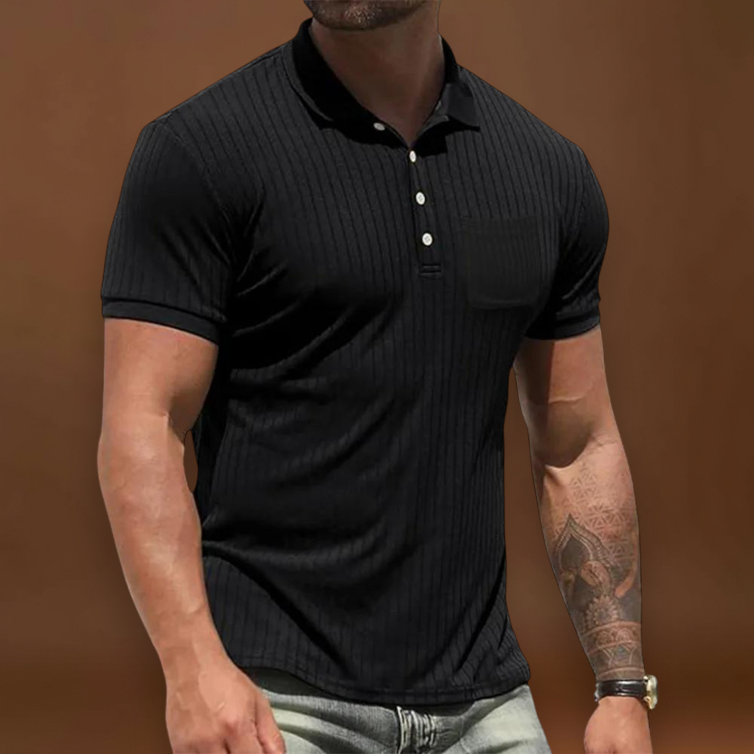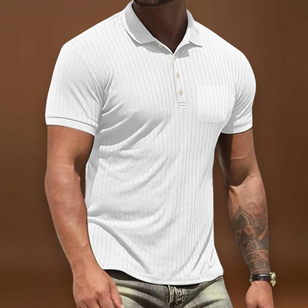Ez a poloing sima felületű és puha tapintású. Hagyományos polo gallérral és testhezálló rövid ujjakkal rendelkezik. A design a tiszta és hasznos részletekre összpontosít, amelyek támogatják a kényelmet és a gondosan megjelenést.