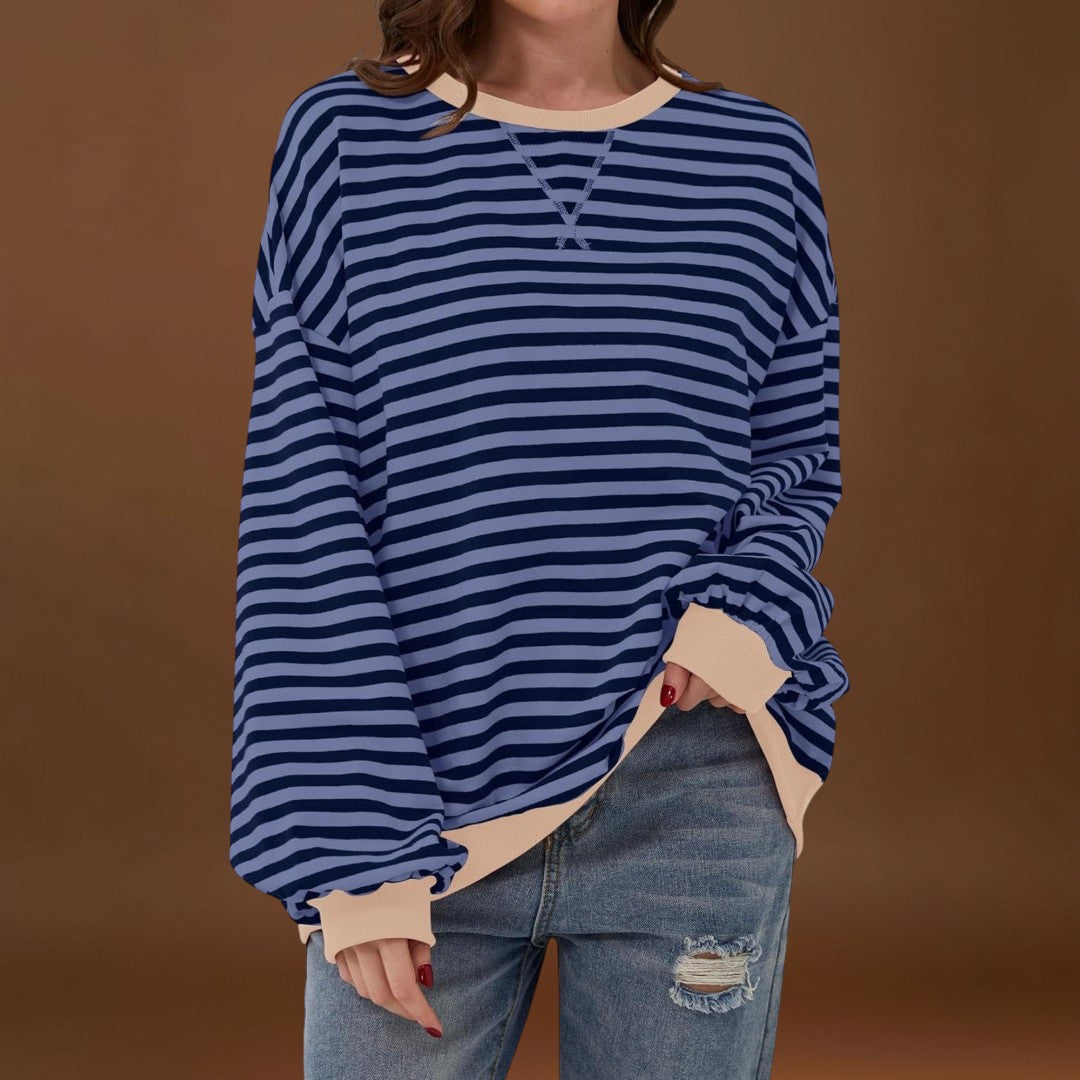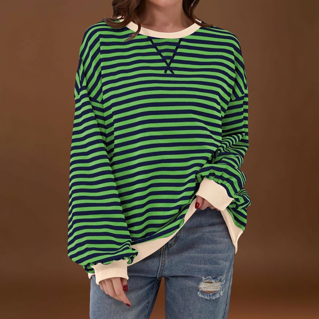 Emelje fel laza stílusát a Vania - Hosszú ujjú laza pulóverrel, kerek nyakkal és csíkos mintával, ahol a kényelmes viselet találkozik a diszkrét eleganciával. A sokoldalú csíkos mintájával ez a darab természetesen vált át a kényelmes hétvégékről a laza kimenetekre, biztosítva, hogy bármilyen alkalomra effortlessen sikkesnek érezze magát.