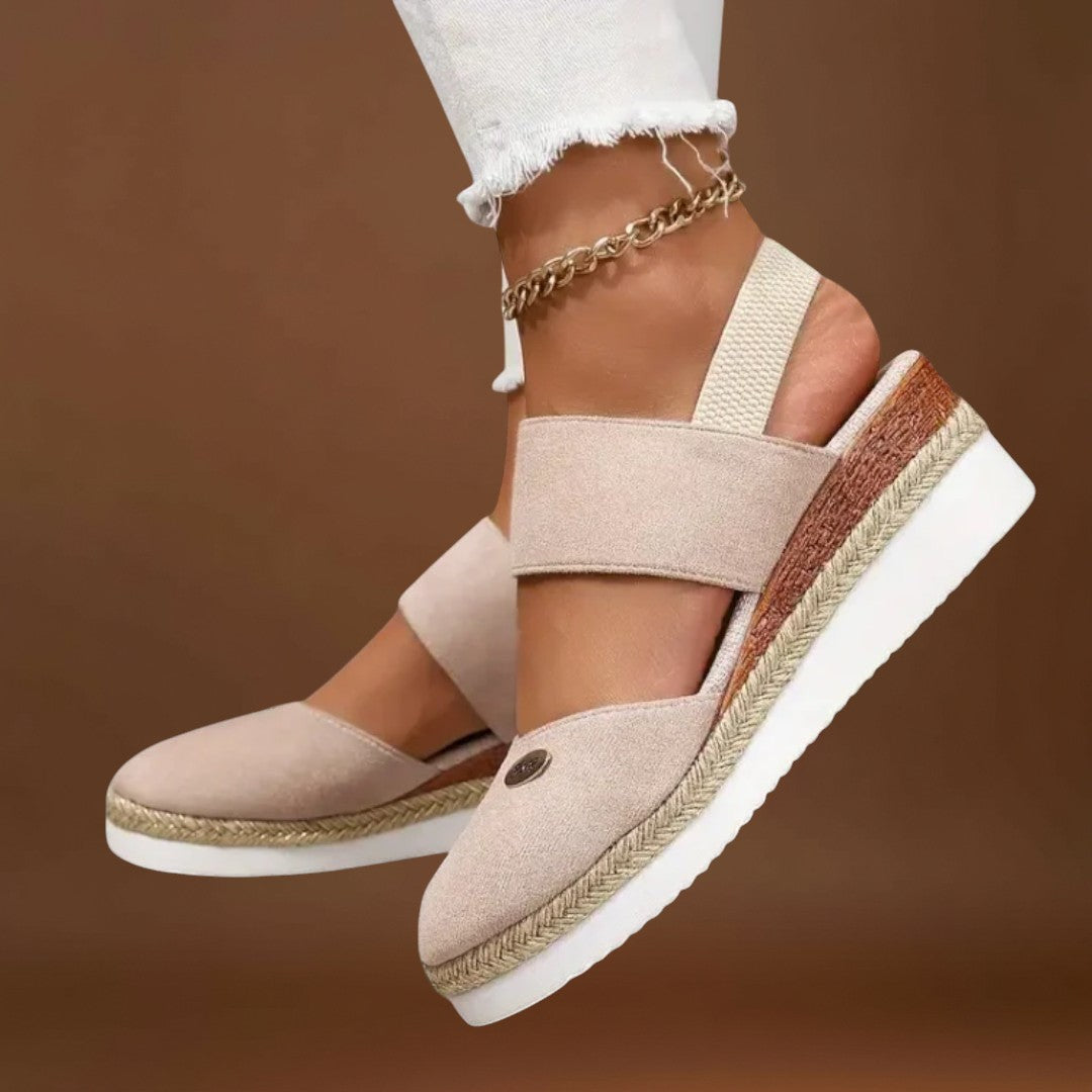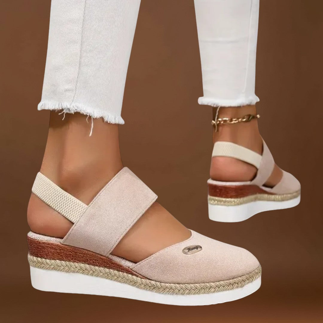 Ezek a wedge szandálok a kényelem és a stílus tökéletes egyensúlya. Modern és nőies dizájnjukkal stabil alapot kínálnak, rugalmas pánttal a praktikus illeszkedésért és egy puha talpbetéttel, amely követi a láb mozgását. A nude szín és a juta, valamint a parafa részletek ideálissá teszik őket elegáns, hétköznapi megjelenésekhez — a hétvégi sétáktól kezdve a szabadtéri eseményekig.