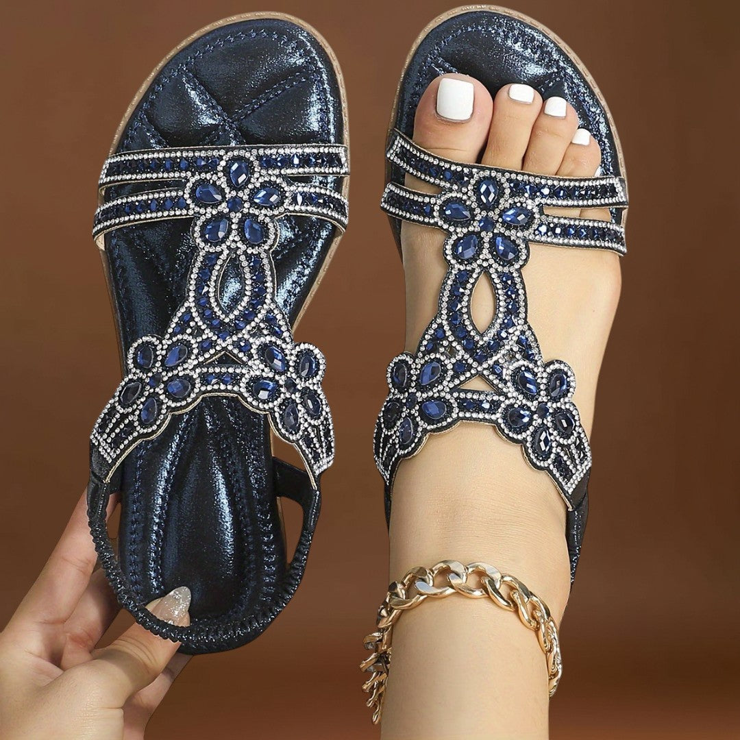 • Lenyűgöző Dizájn: Csillogó gyöngyök és virágminta, amelyek bármilyen nyári megjelenést feldobnak.
