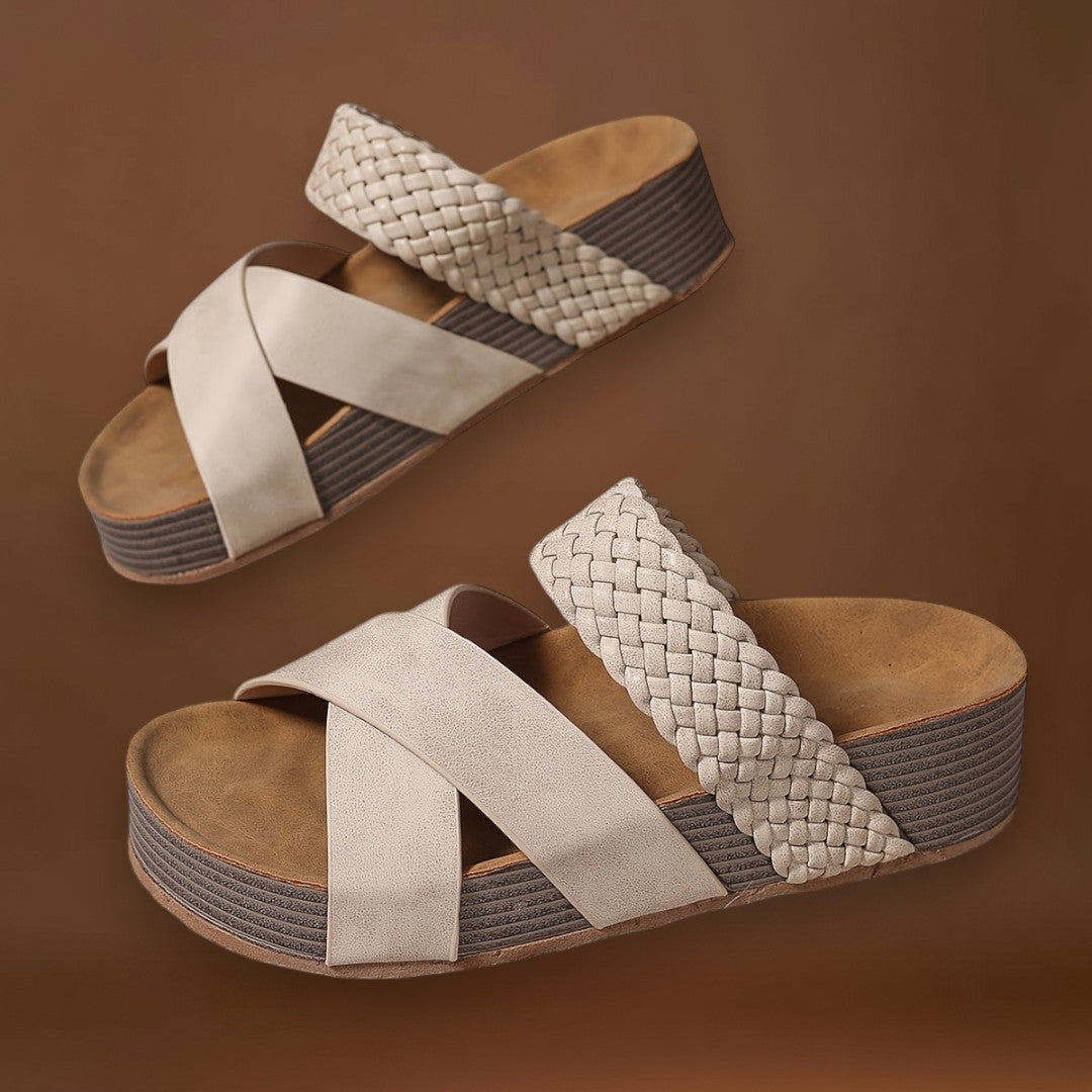 Ezek a wedge szandálok tökéletesek azok számára, akik szeretik a laza megjelenést egy kis kézműves érintéssel. Keresztpántos kialakítás, fonott részletekkel és öregedett barna árnyalatú befejezéssel, ez a modell stabilitást és kényelmet kínál minden lépésnél. Az anatómiai talpbetét és a slip-on design ideálissá teszi ezeket a szandálokat a nyári napokra, legyen szó városi sétákról vagy tengerparti kiruccanásokról.