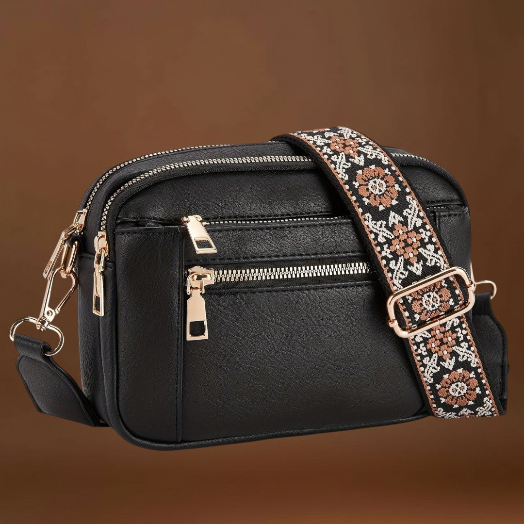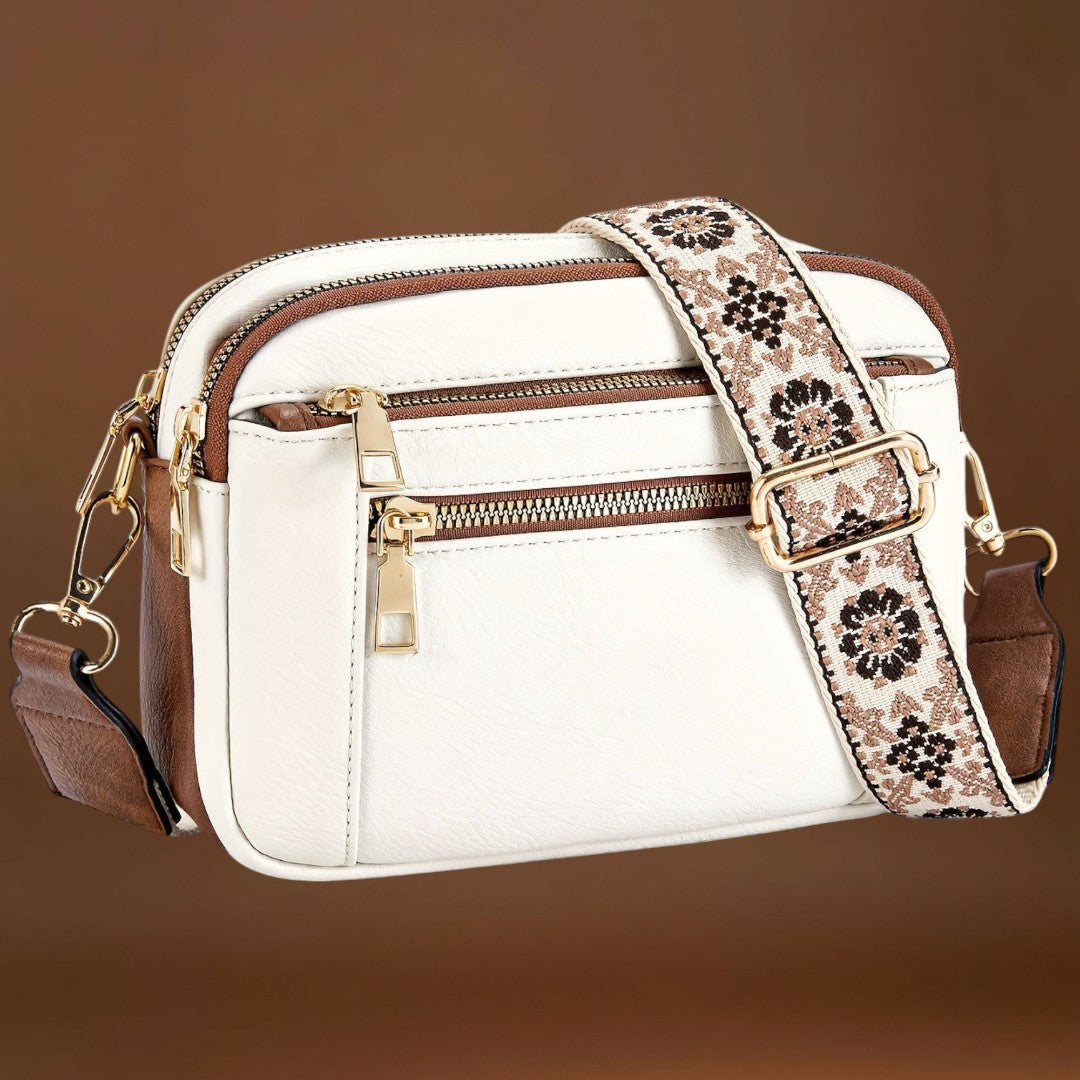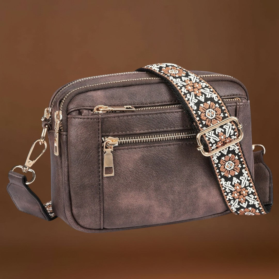 • Stílusos Boho-Chic pánt: Az állítható, mintás pánt nemcsak karaktert ad, hanem kényelmet is biztosít a nap folyamán.