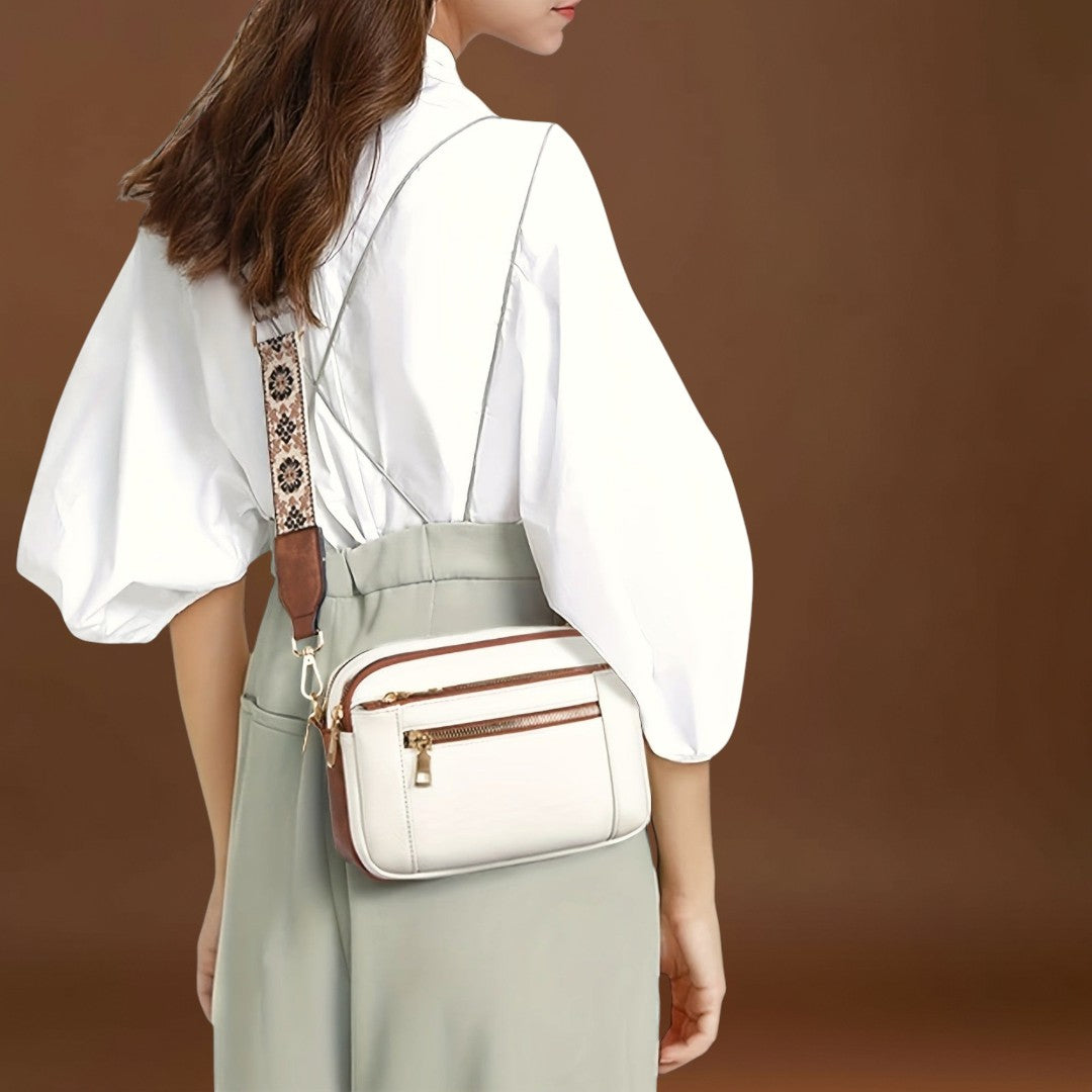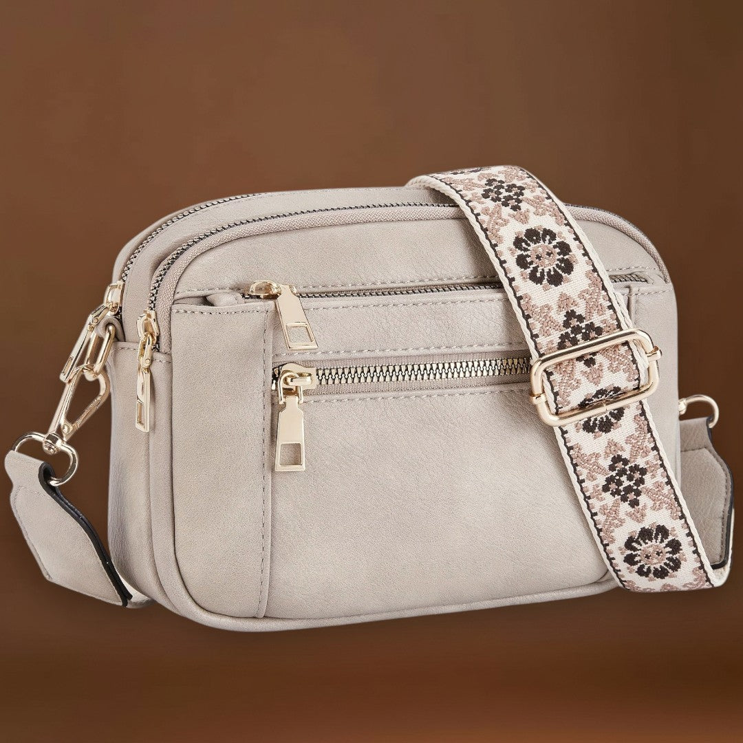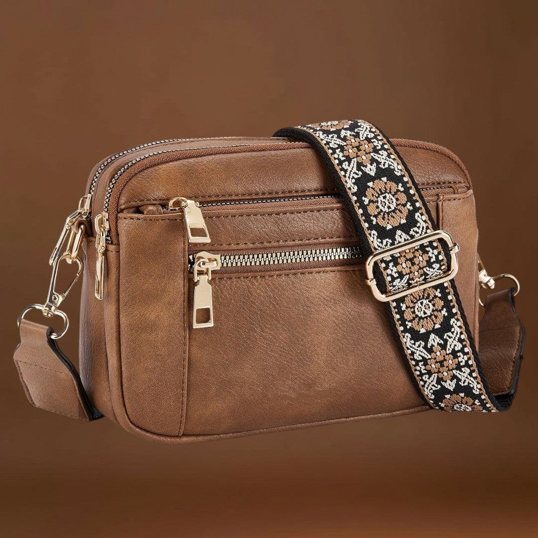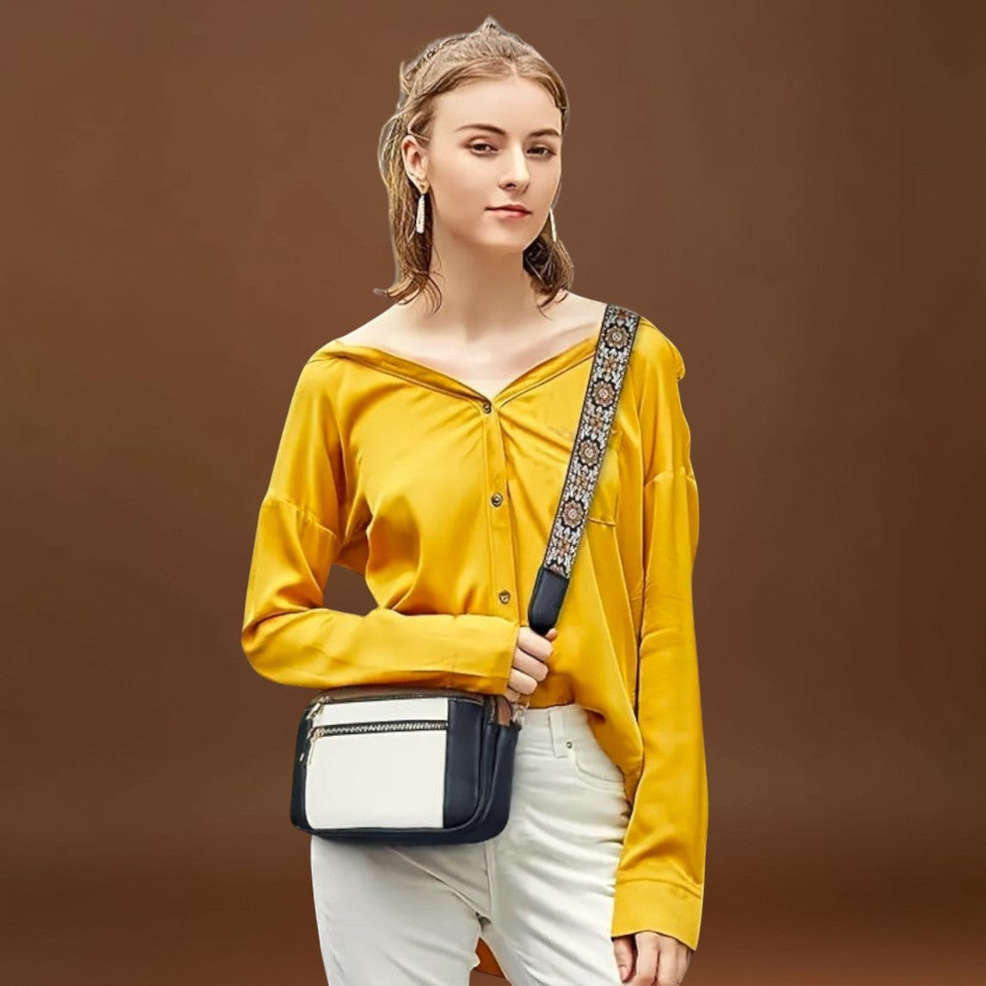 • Stílusos Boho-Chic pánt: Az állítható, mintás pánt nemcsak karaktert ad, hanem kényelmet is biztosít a nap folyamán.
